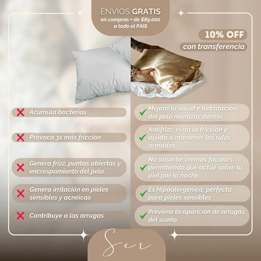 ¡Un producto que hoy ya no te puede faltar! Es para todo tipo de cabellos y todo tipo de pieles. La funda de satén de Ser es parte del ritual de descanso más buscado para las que buscan cuidar su pelo al dormir y reducir el frizz. Dormí mejor y cuidá tu piel y tu pelo mientras descansás. ¡Sorprendete con los cambios al despertarte la mañana siguiente!